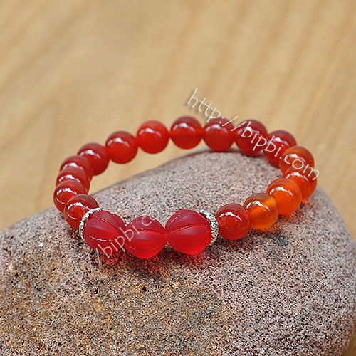 Vòng tay đá mã não đỏ mix hạt lưu ly hình trái bí dễ thương. Size hạt đá chính 8mm.