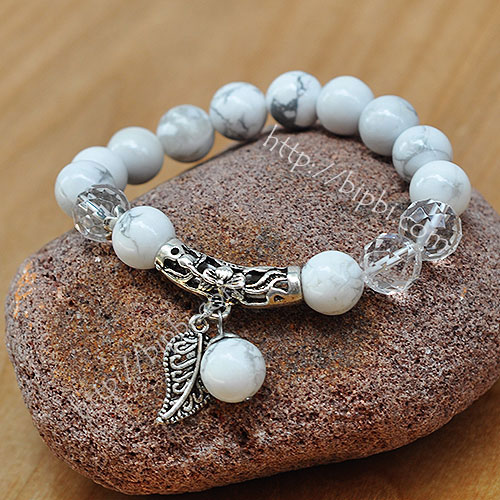 Vòng tay đá howlite thanh lịch mix hạt thạch anh pha lê và charm lá vừa dịu dàng, vừa trẻ trung.