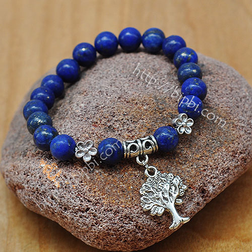 Vòng tay đá lapis lazuli xinh xắn với charm hoa và cây, rất thích hợp cho cô gái điệu đà mệnh Mộc, mệnh Thủy.